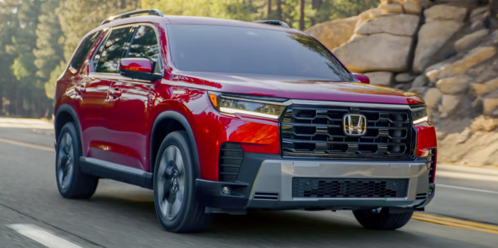 The Honda Pilot also includes Honda Sensing technologies such as traffic jam assist, blind-spot monitoring, and cross-traffic monitoring on most trims, helping families feel more confident on the road.