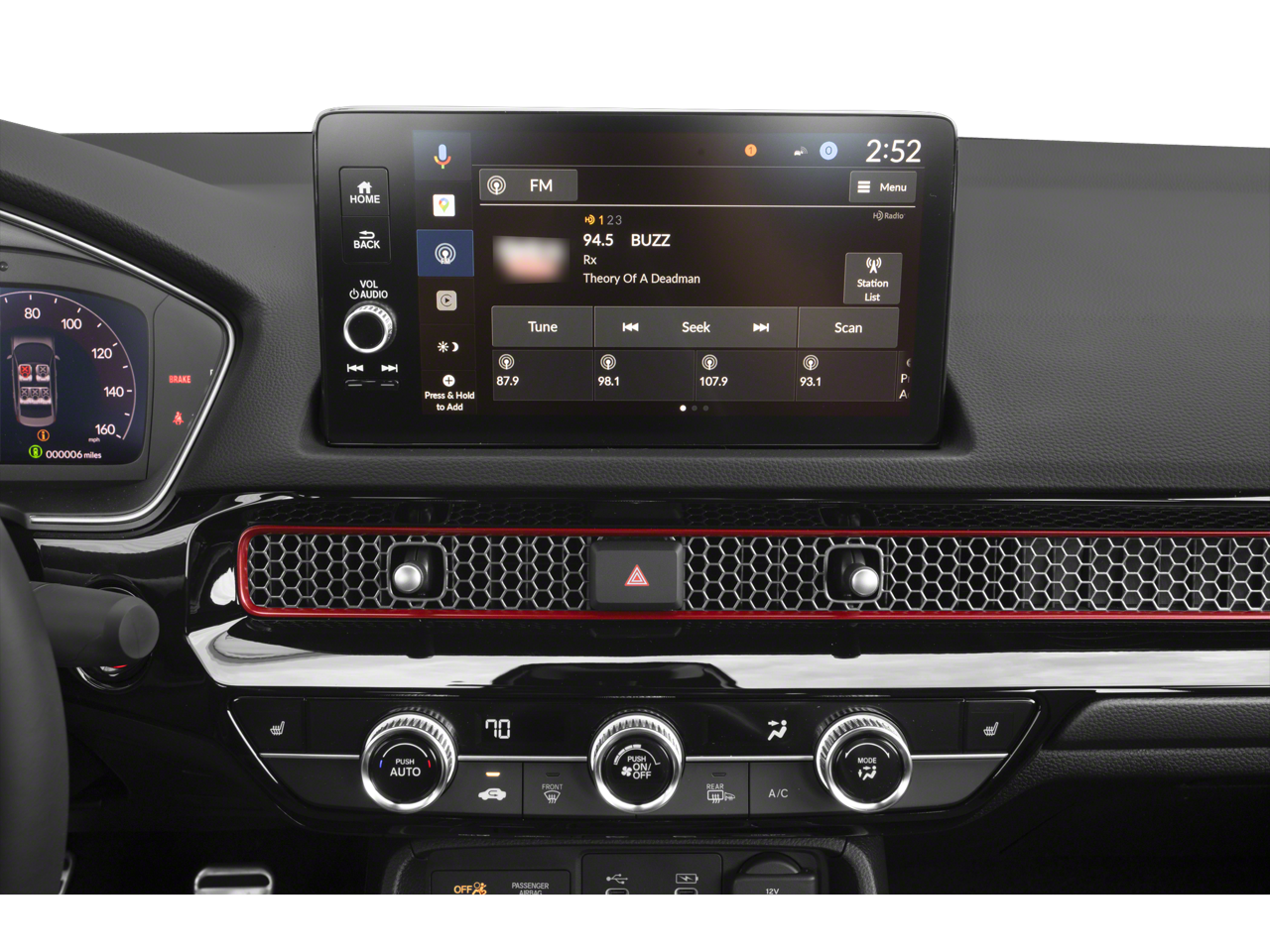 - Radio: BOSE Premium Sound System -inc: 12 speakers w/subwoofer, 9" color touchscreen, wireless Apple CarPlay and Android Auto compatibility, SiriusXM (SiriusXM requires a subscription after any trial period, If you decide to continue your SiriusXM service at the end of your trial subscription, the plan you choose will automatically renew and bill at then-current rates until you call SiriusXM at 1-866-635-2349 to cancel, See our customer agreement for complete terms at www.siriusxm.com, Fees and programming subject to change, Available in the 48 contiguous United States and D.C, SiriusXM and all related marks and logos are trademarks of SiriusXM Radio Inc.), HD Radio, Bluetooth® HandsFreeLink and streaming audio, HondaLink, SMS text message function (Your wireless carrier's rate plans apply, State or local laws may limit use of texting feature.), Speed-sensitive Volume Compensation (SVC), Radio Data System (RDS) and 2.5-amp USB smartphone/audio interface port in front console