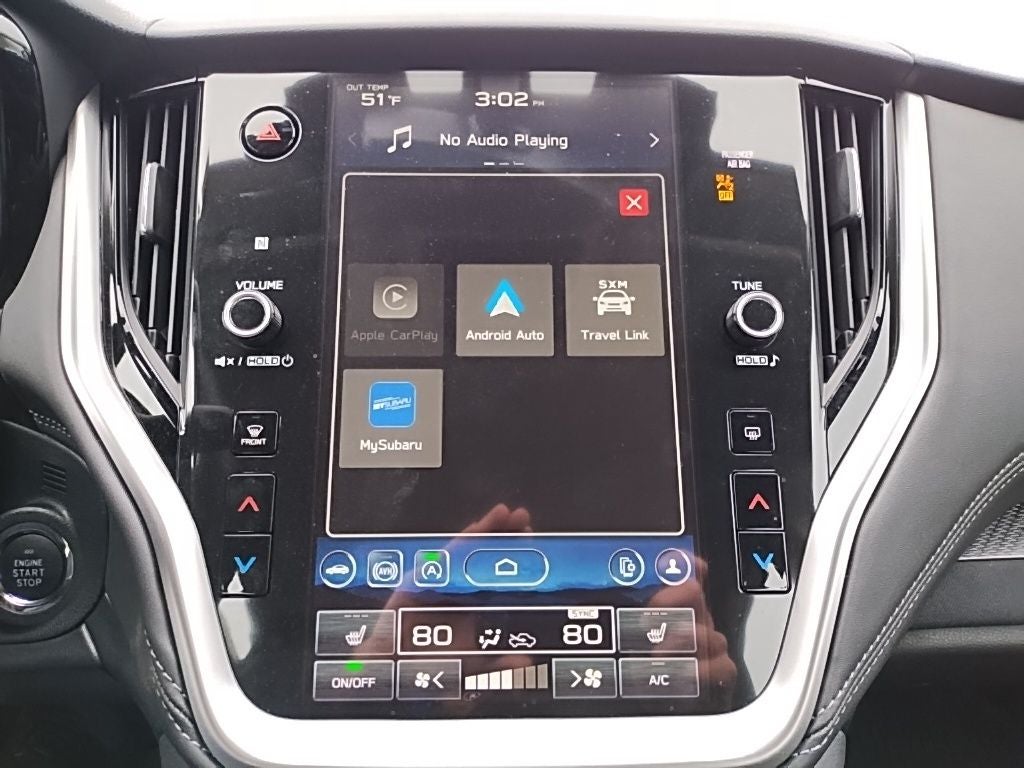 - Radio: Subaru 11.6" Multimedia Plus System -inc: AM/FM stereo, HD Radio, valet mode, multi-touch gesture high resolution display screen, voice activated controls, Bluetooth® audio streaming and hands-free phone connectivity w/SMS text messaging (refer to subaru.com for cell phone compatibility), Near Field Communication (NFC), iPod control capability, SiriusXM w/360L (4 months free trial/subscription required after), SiriusXM Travel Link (3 years free trial/subscription required after), smartphone integration w/full screen view and wireless connection for Android Auto and Apple CarPlay, USB and Over The Air (OTA) audio system update, audio/Bluetooth® steering wheel control switches, 6 speakers, 3.5mm illuminated front auxiliary input jack, illuminated front and rear USB-A and USB-C input/charge ports and roof mounted satellite and connected services